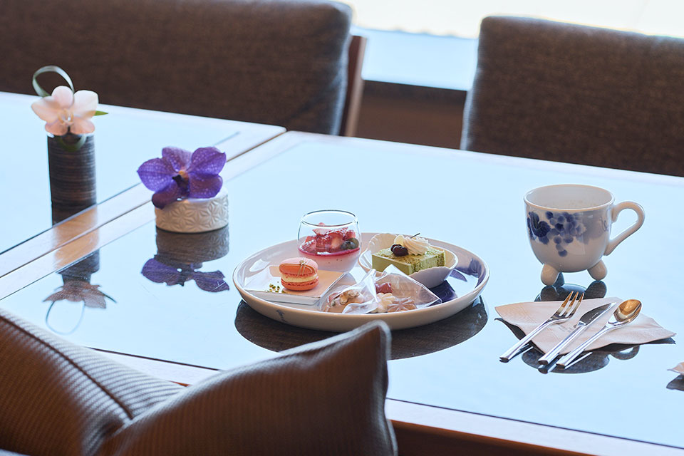 ホテルメイドのスイーツやスコーンなどをご用意しております。香り高いカフェメニューや厳選したシャンパンとともに、ゆったりとしたティータイムを満喫いただけます。