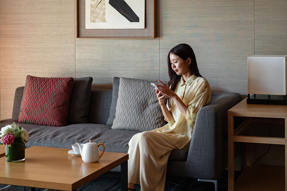 クラブフロア(27-29F)およびスイートルームにご宿泊のお客さまがご利用いただける専用ラウンジです。和紙や組子細工、西陣織のアート作品などが散りばめられた、日本らしさとモダンな空間のラウンジからは、国会議事堂をはじめとする四季折々の皇居や東京の夜景をご覧いただけます。ひととき日常を離れ、特別な時間をお過ごしください。