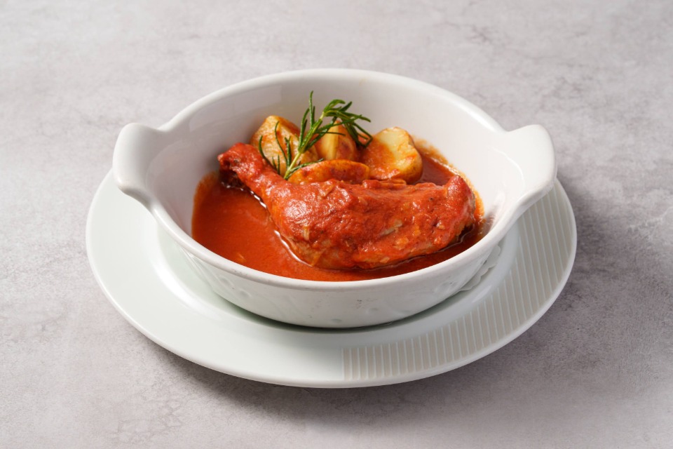 骨付き鶏もも肉のトマト煮込み
