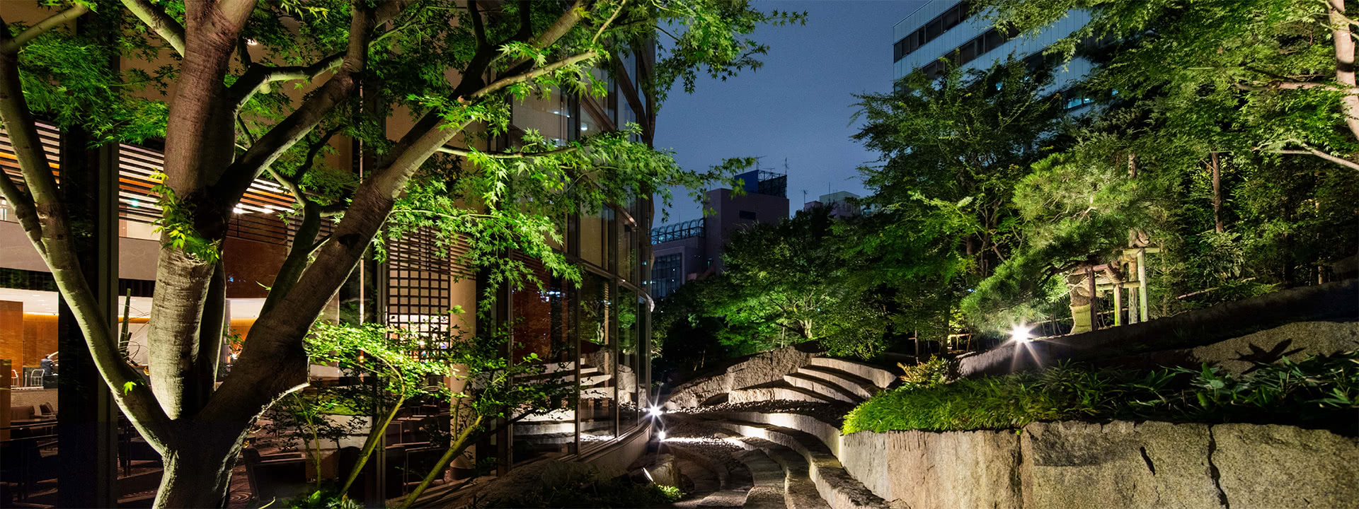 庭園の緑を借景に、光溢れる吹き抜けのモダンな雰囲気のラウンジでティータイムや打ち合わせの場所として最適な空間です。