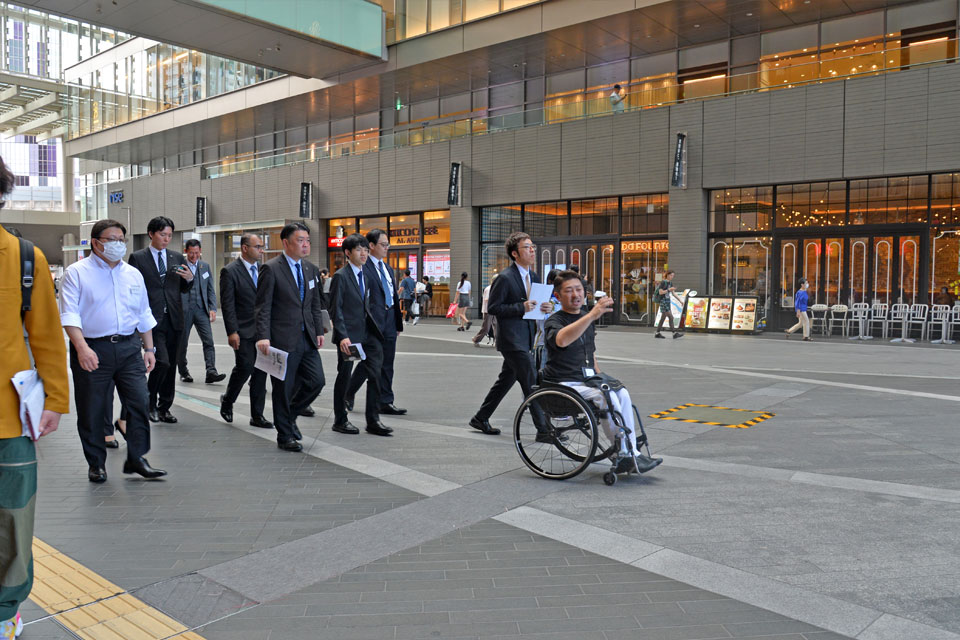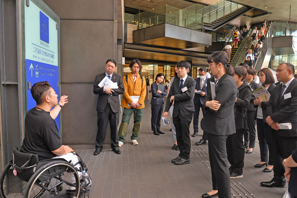 この日の会場である二子玉川エクセルホテル東急の公式Webサイトに掲載している、東急線「二子玉川駅」からホテルまでのアクセスルートを、実際に車いすで辿りながら掲載情報の有益性や不便な点を検証しました。