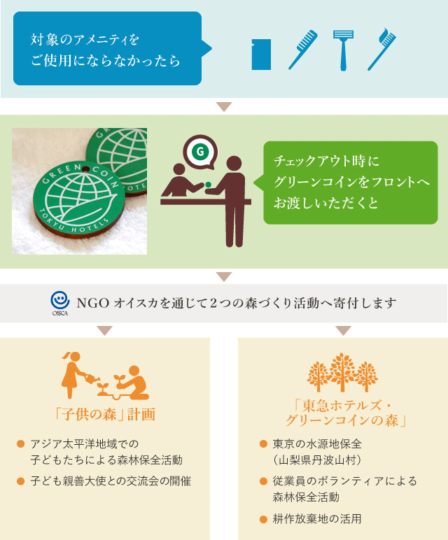 東急ホテルズでは地球環境保護に配慮し「グリーンコイン制度」を導入しております。