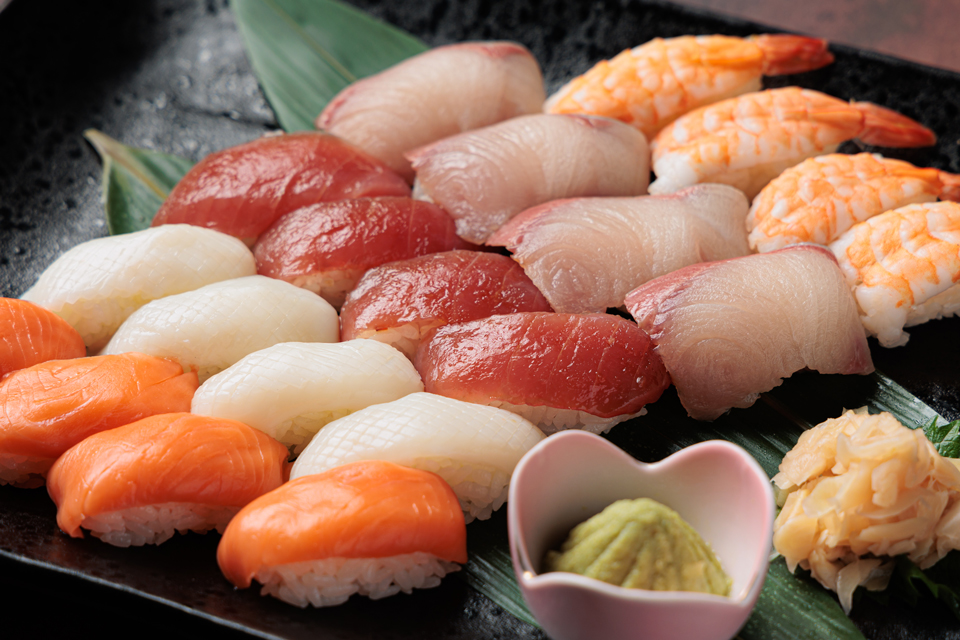 にぎり寿司(サーモン、イカ、エビ、マグロ)