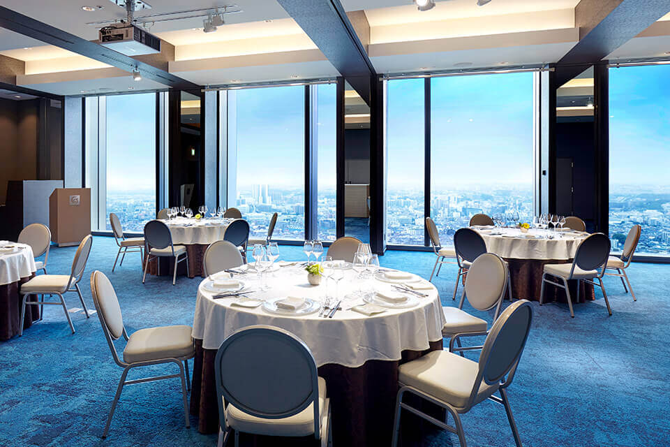 最高層30階に位置する開放的な空間に、街並が一望できる見事な眺望を持つ大宴会場「たまがわ」。少人数のお集まりに最適な「テラスルーム」や「プライベートテラス」などをご用意しています。