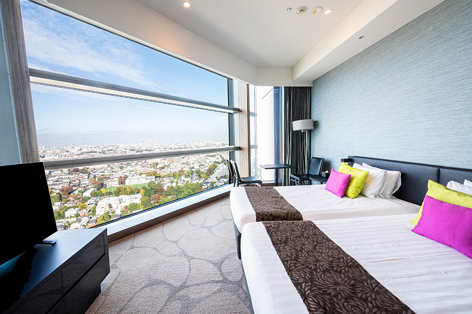 二子玉川ライズタワーオフィスの28階から30階がホテル専用フロアとなり、「シティビュールーム」「リバービュールーム」では足元から広がる大窓より関東平野を眼下に見下ろすことができます。
