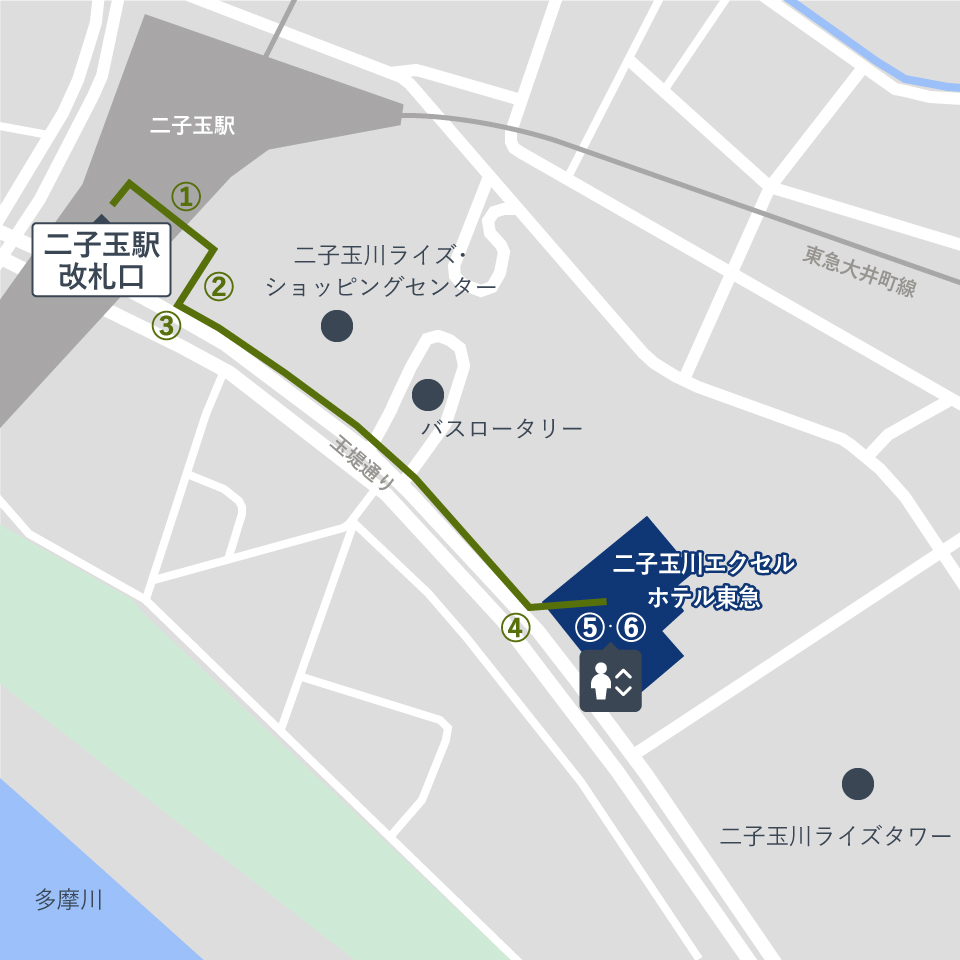 二子玉川駅改札からホテルまでの経路