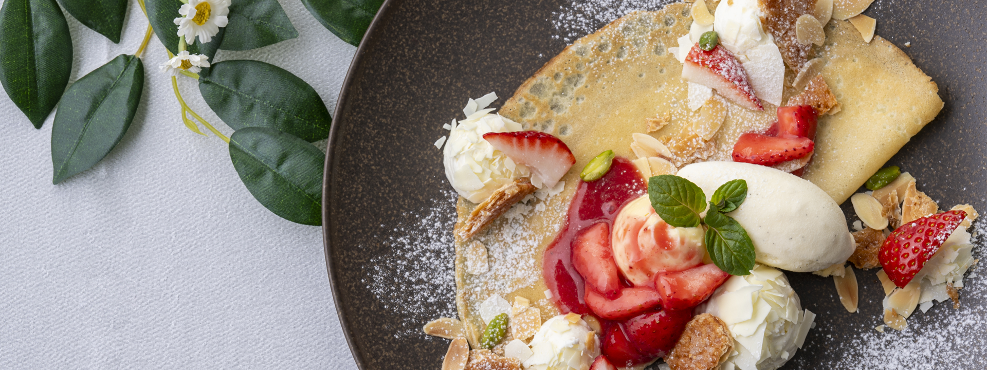 福島県産いちごとレアチーズムースのクレープ仕立て
