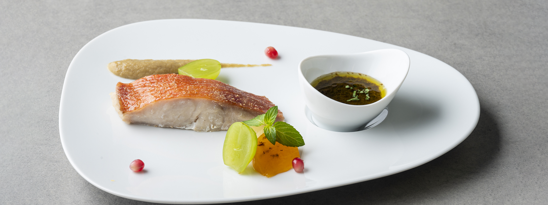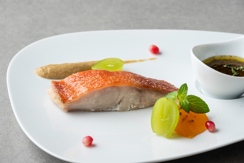 下田産金目鯛のヴァプール オリーブソースとフルーツピクルス