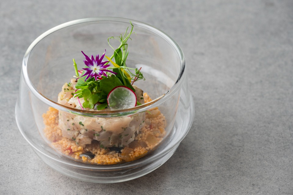 炙ったビンチョウマグロのタルタル トマト風味のクスクス