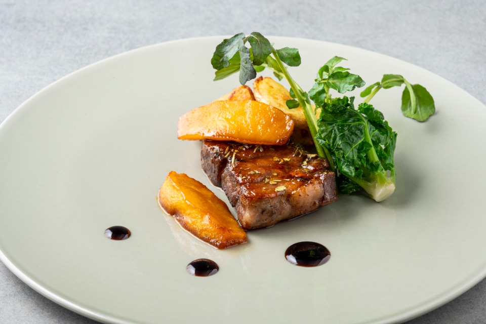 メインディッシュには牛ロースを使用したポワレをご提供します。