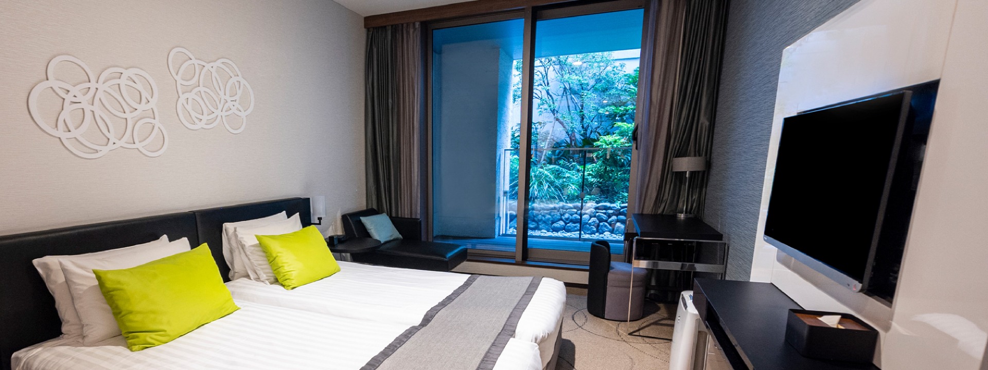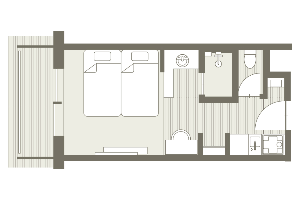 お部屋の間取りはあくまで一例です。面積や家具の配置、備品などはお部屋により異なりますので、あらかじめご了承ください。