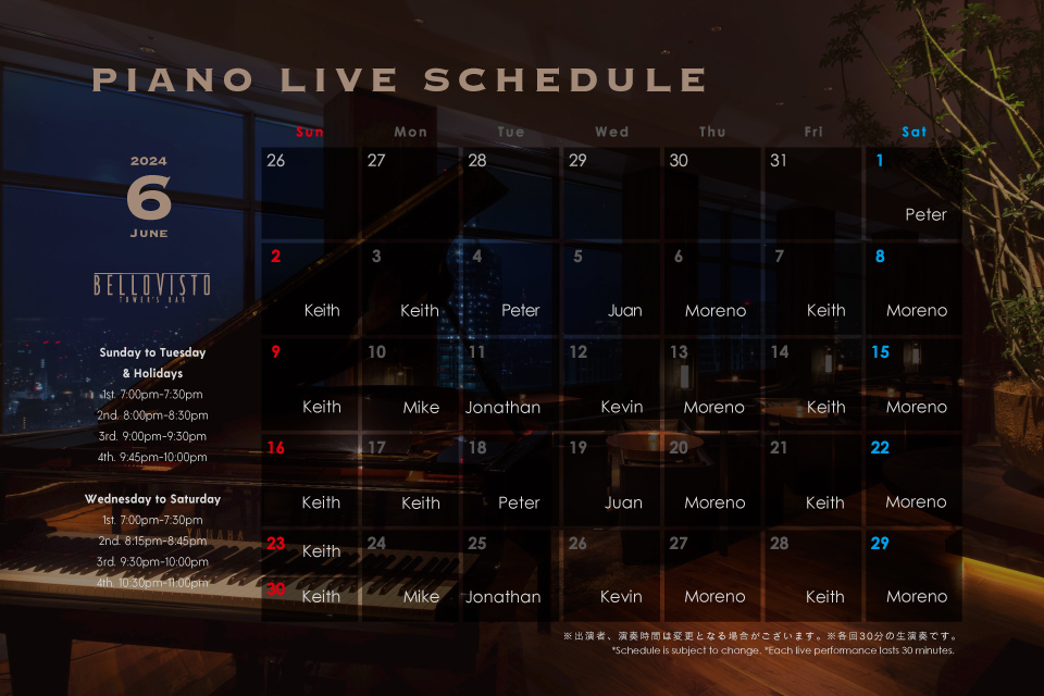 From after 7:00 p.m. please enjoy the wonderful live music and the breathtaking skyline of Tokyo.