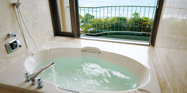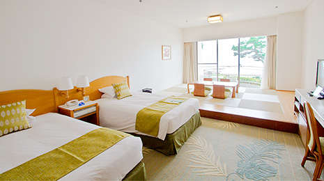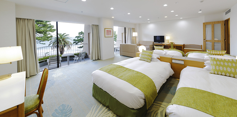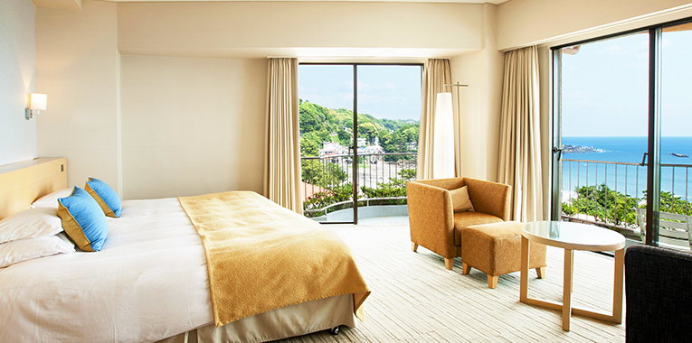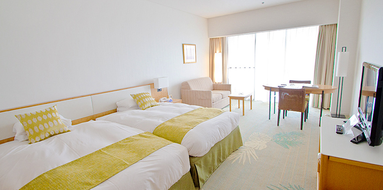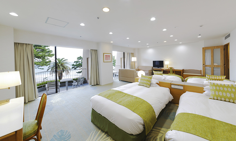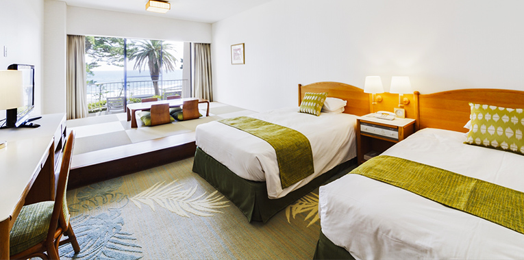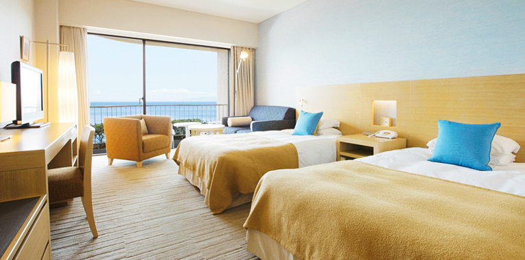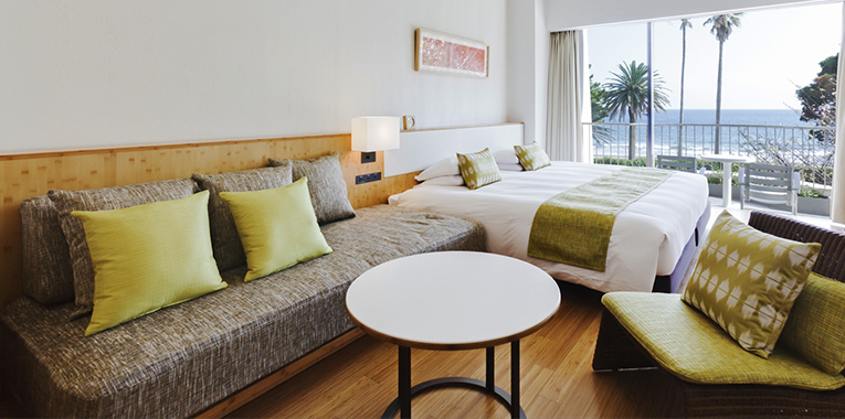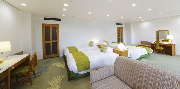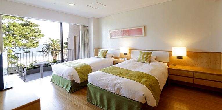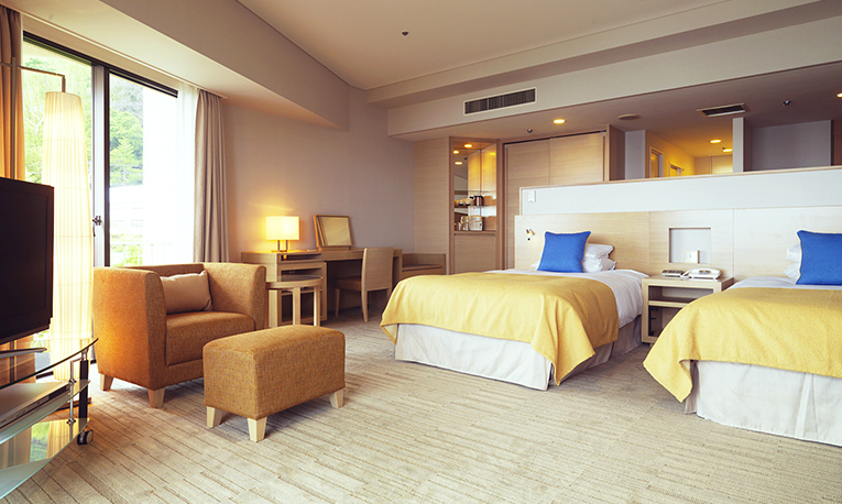 Mineral water,Japanese green tea set, slippers, bath towels, face towels, hand towels, liquid soap, body wash, shampoo, conditioner, toothbrush set, razor, comb, q-tips, nightwear