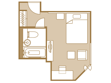 The layout of the room is only an example. Please understand beforehand that the area, the arrangement of furniture, furnishings etc. vary depending on the room.