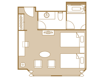 The layout of the room is only an example. Please understand beforehand that the area, the arrangement of furniture, furnishings etc. vary depending on the room.
