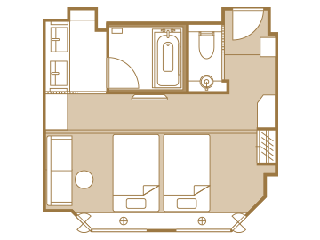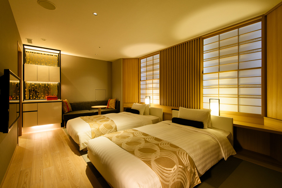 The layout of the room is only an example. Please understand beforehand that the area, the arrangement of furniture, furnishings etc. vary depending on the room.