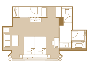 The layout of the room is only an example. Please understand beforehand that the area, the arrangement of furniture, furnishings etc. vary depending on the room.