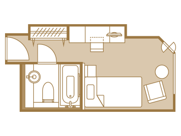 The layout of the room is only an example. Please understand beforehand that the area, the arrangement of furniture, furnishings etc. vary depending on the room.