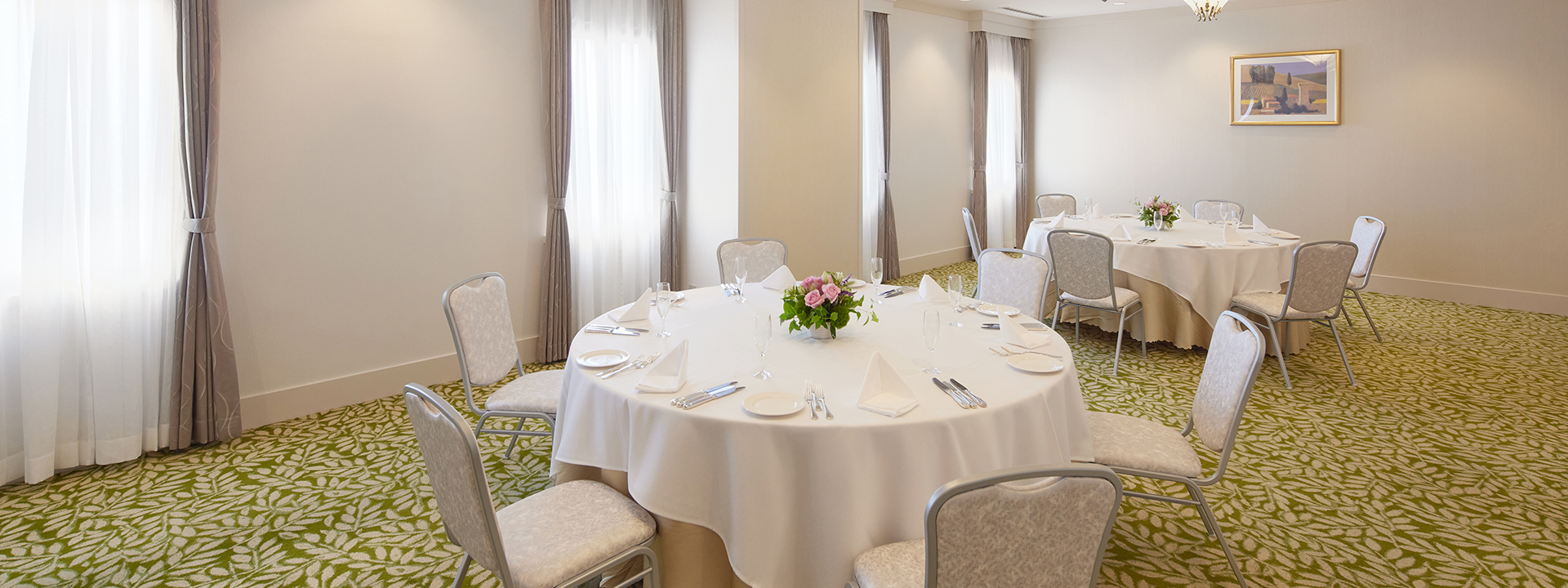 A banquet hall with a modern mansion style, segmented from the larger "Oak Room" banquet hall. It can be used for a variety of events, such as meetings, seminars, exhibitions and parties.