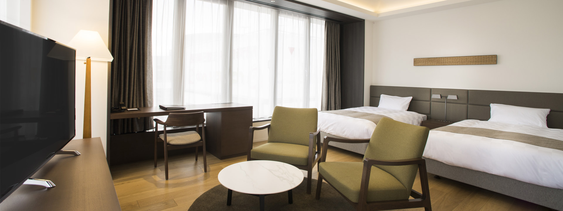 The layout of the room is only an example. Please understand beforehand that the area, the arrangement of furniture, furnishings etc. vary depending on the room.