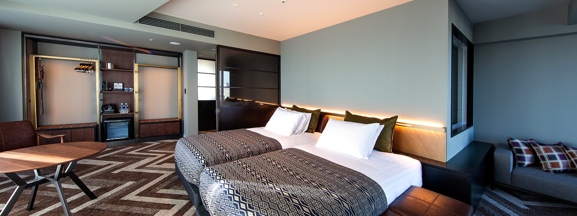 Enjoy a comfortable night’s sleep on the 160cm wide queen bed in the spacious atmosphere with over 25sqm of space. Deluxe rooms are equipped with 200cm wide Sealy beds.