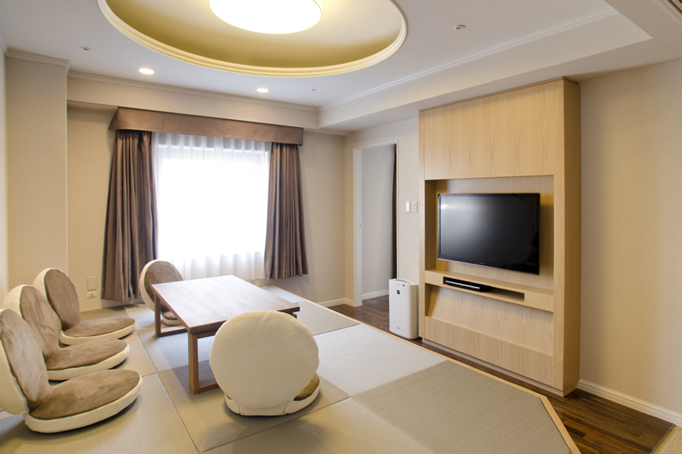 ベッドルームとリビングとに分かれた間取り。お部屋の広さとスイート特有の落ち着いた雰囲気が好評です。