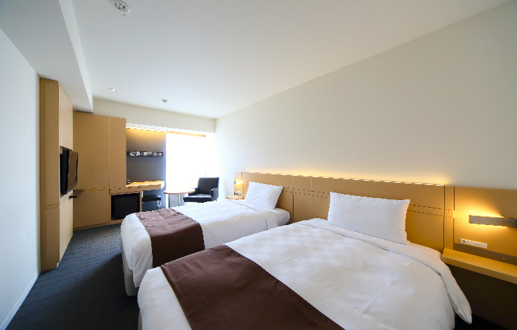 ハリウッドツインタイプにも設置可能なベッドでゆったりとお寛ぎいただけるお部屋です。