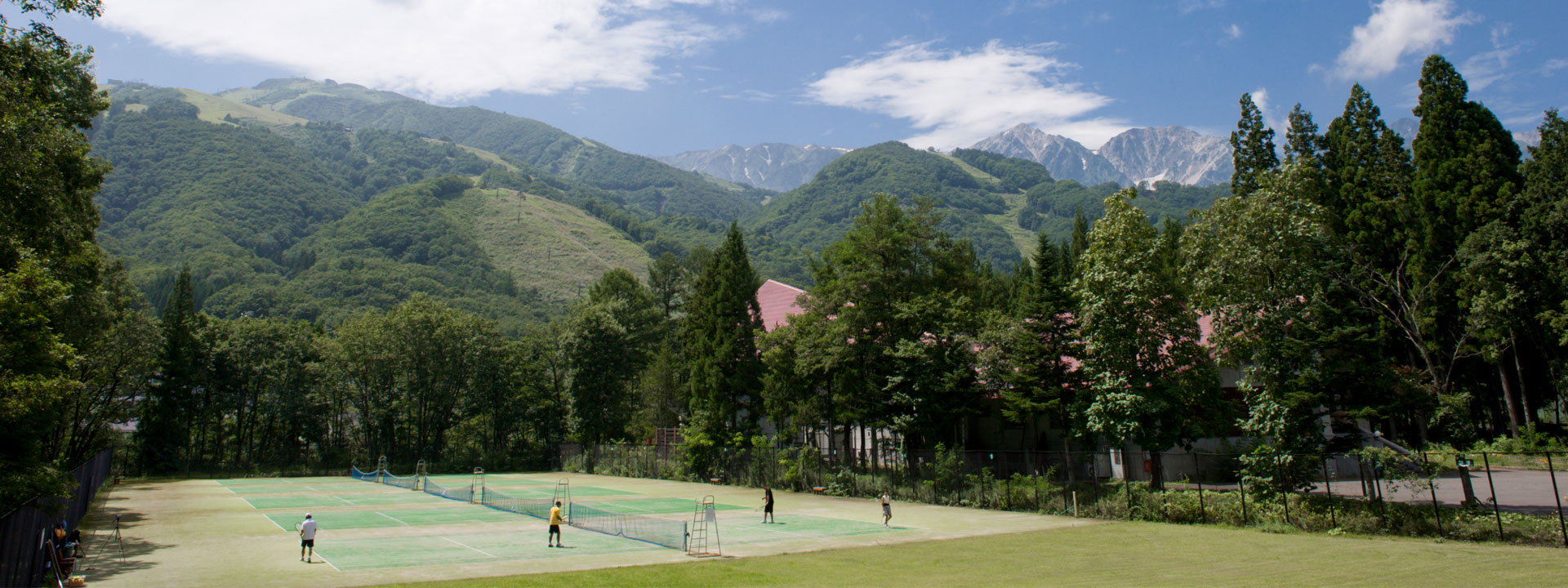 ゴールデンウィークから11月下旬までオープンするテニスコートは水はけの良いスパックサンドコート。外来利用も可能となっております。