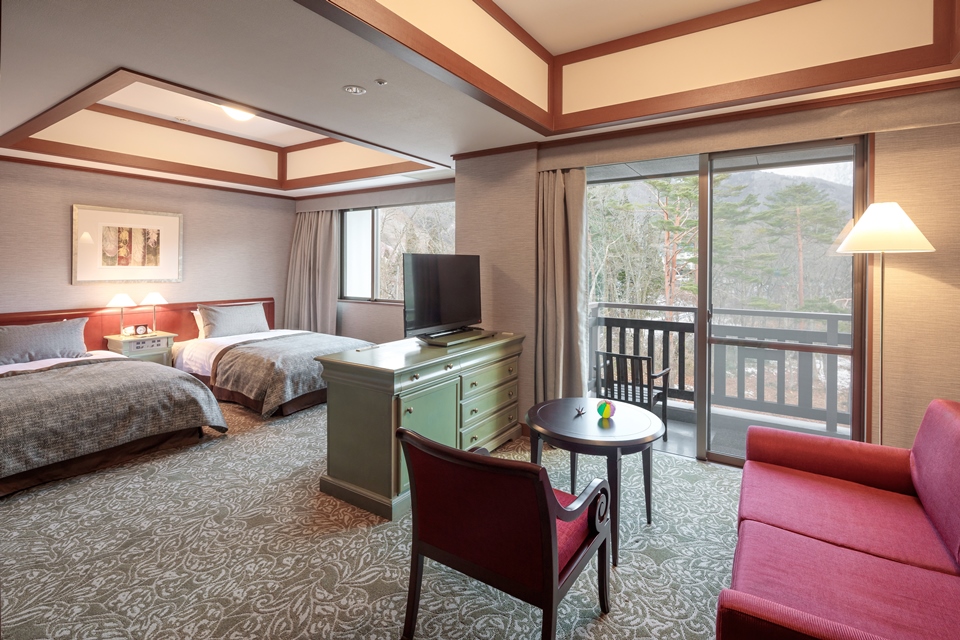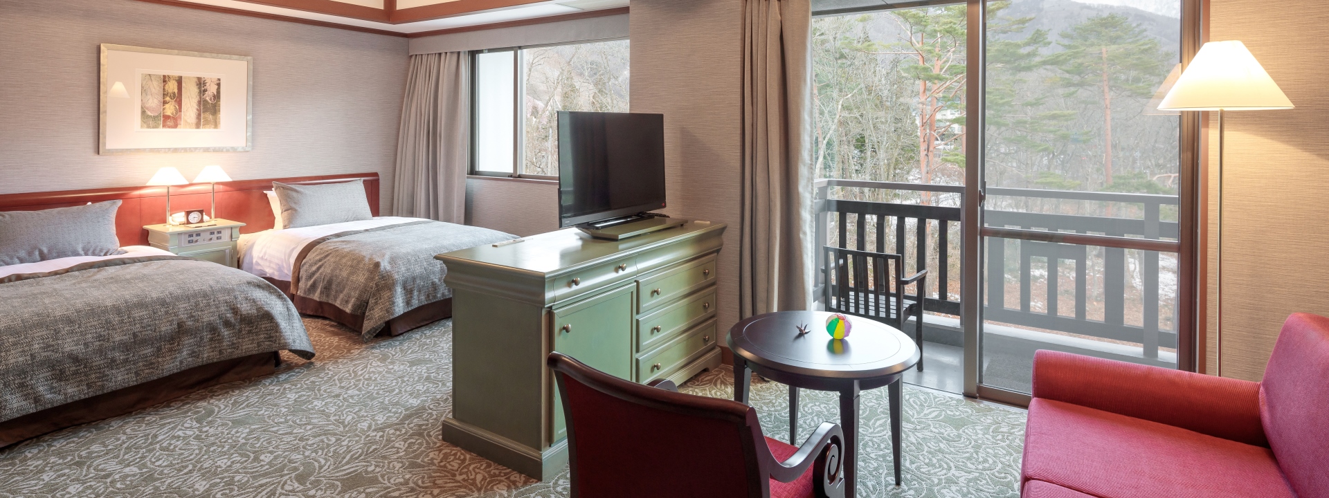 トップフロアデラックスアルプスツインは最上階(5階)の中庭側に位置するデラックスツインルームです。