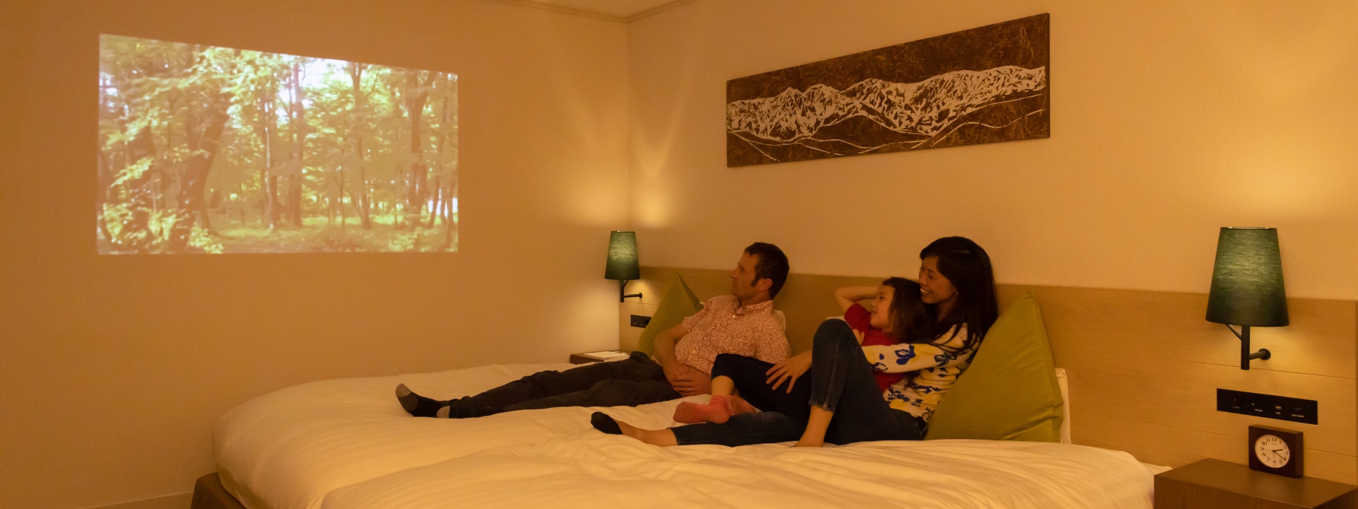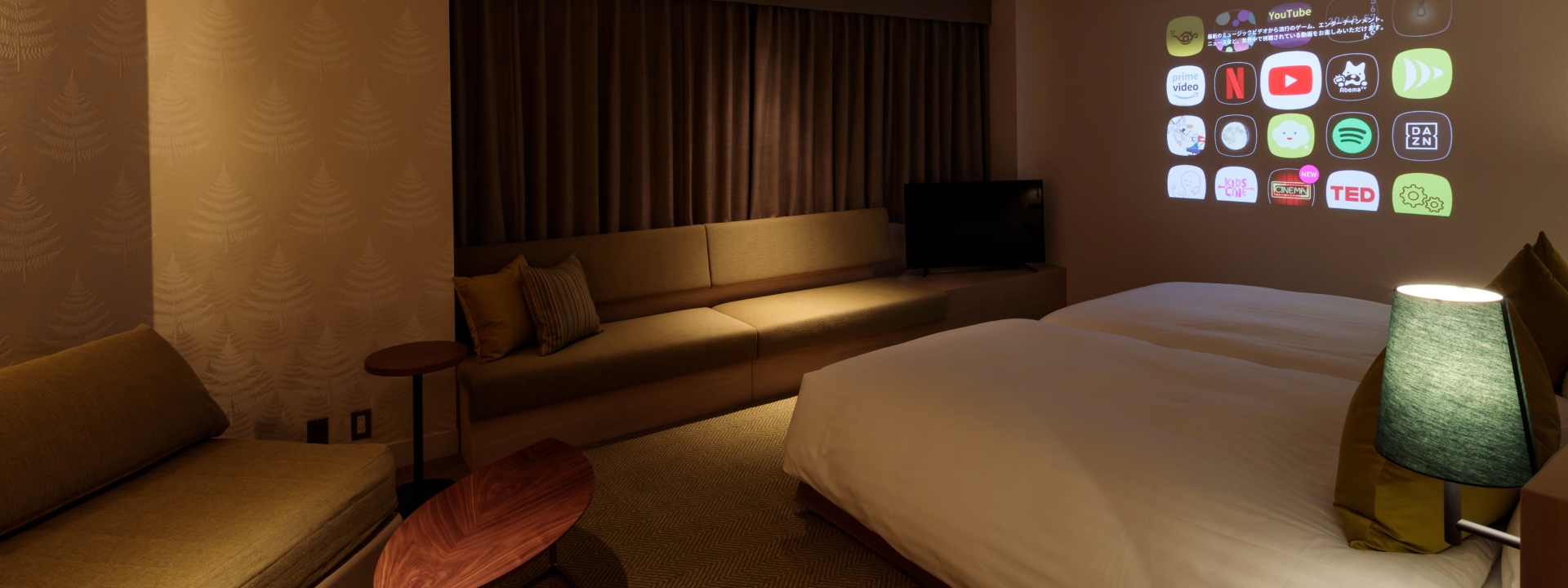 テレビやYouTubeの映像を壁に映し出し、臨場感のある映像をお楽しみいただけます。