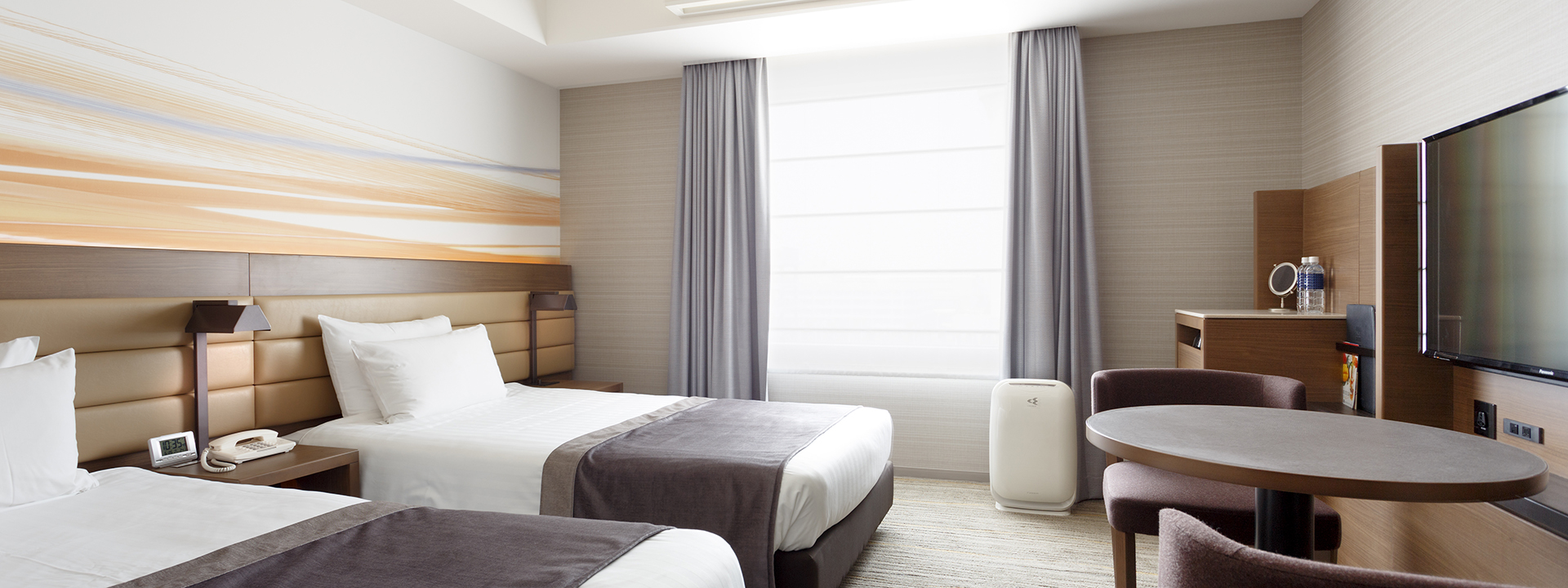 お部屋の間取りはあくまで一例です。面積や家具の配置、備品などはお部屋により異なりますので、あらかじめご了承ください。