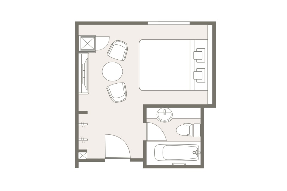 お部屋の間取りはあくまで一例です。面積や家具の配置、備品などはお部屋により異なりますので、あらかじめご了承ください。