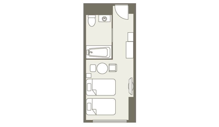 お部屋の間取りはあくまで一例です。面積や家具の配置、備品などはお部屋により異なりますので、あらかじめご了承ください。