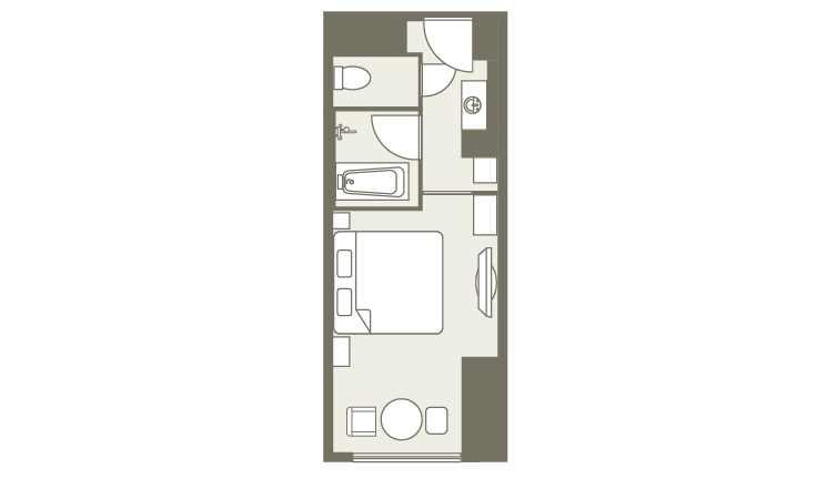 お部屋の間取りはあくまで一例です。面積や家具の配置、備品などはお部屋により異なりますので、あらかじめご了承ください。