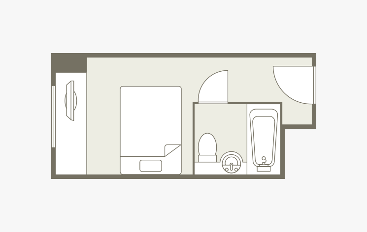 お部屋の間取りはあくまで一例です。面積や家具の配置、備品などはお部屋により異なりますので、あらかじめご了承ください。