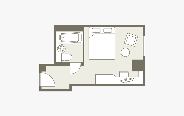 お部屋の間取りはあくまで一例です。面積や家具の配置、備品などはお部屋により異なりますので、あらかじめご了承ください。