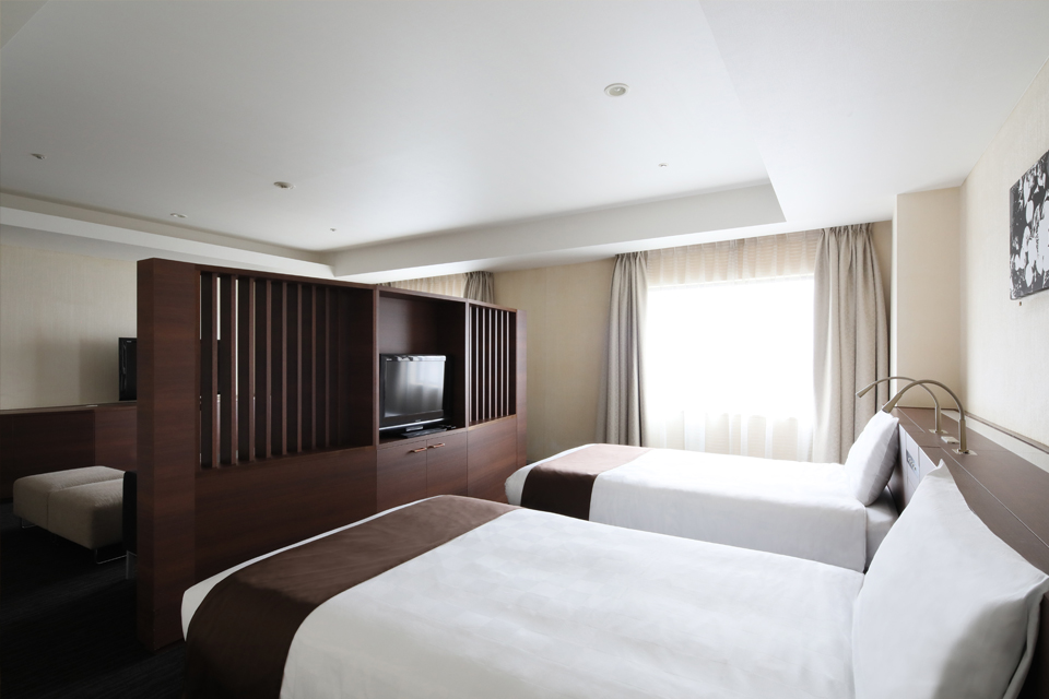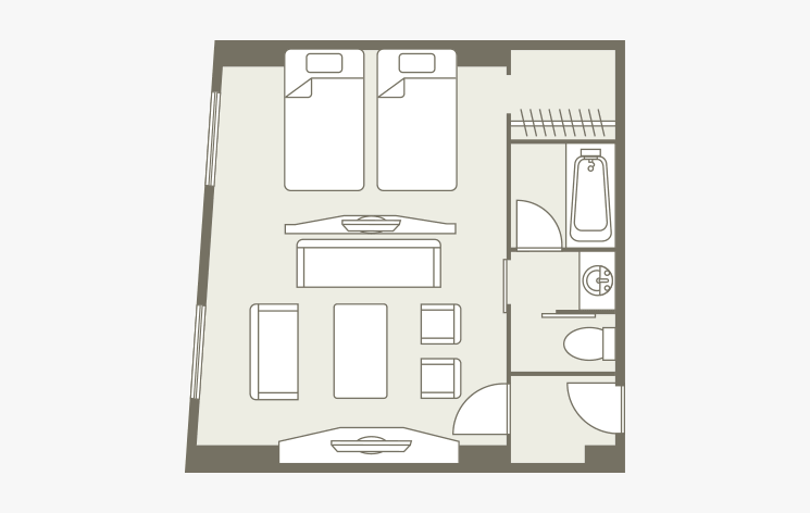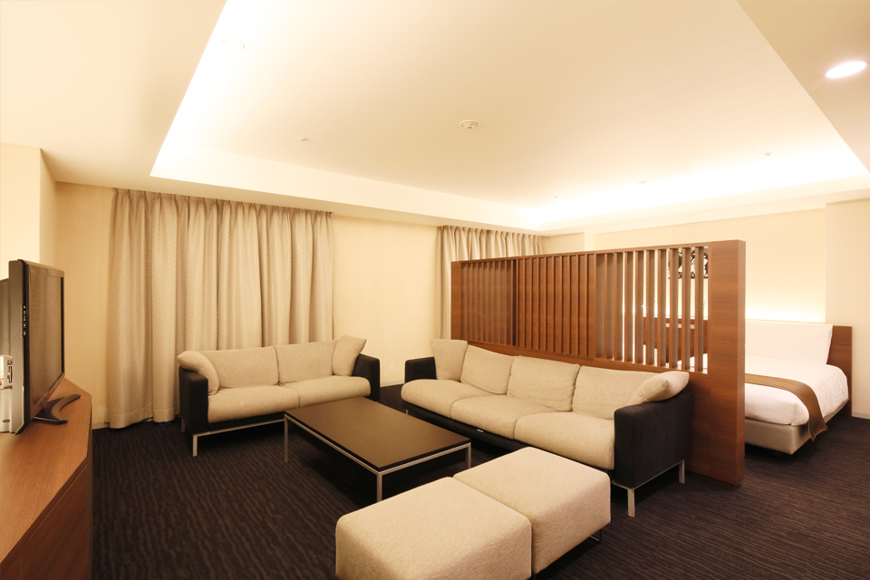 お部屋の間取りはあくまで一例です。面積や家具の配置、備品などはお部屋により異なりますので、あらかじめご了承ください。