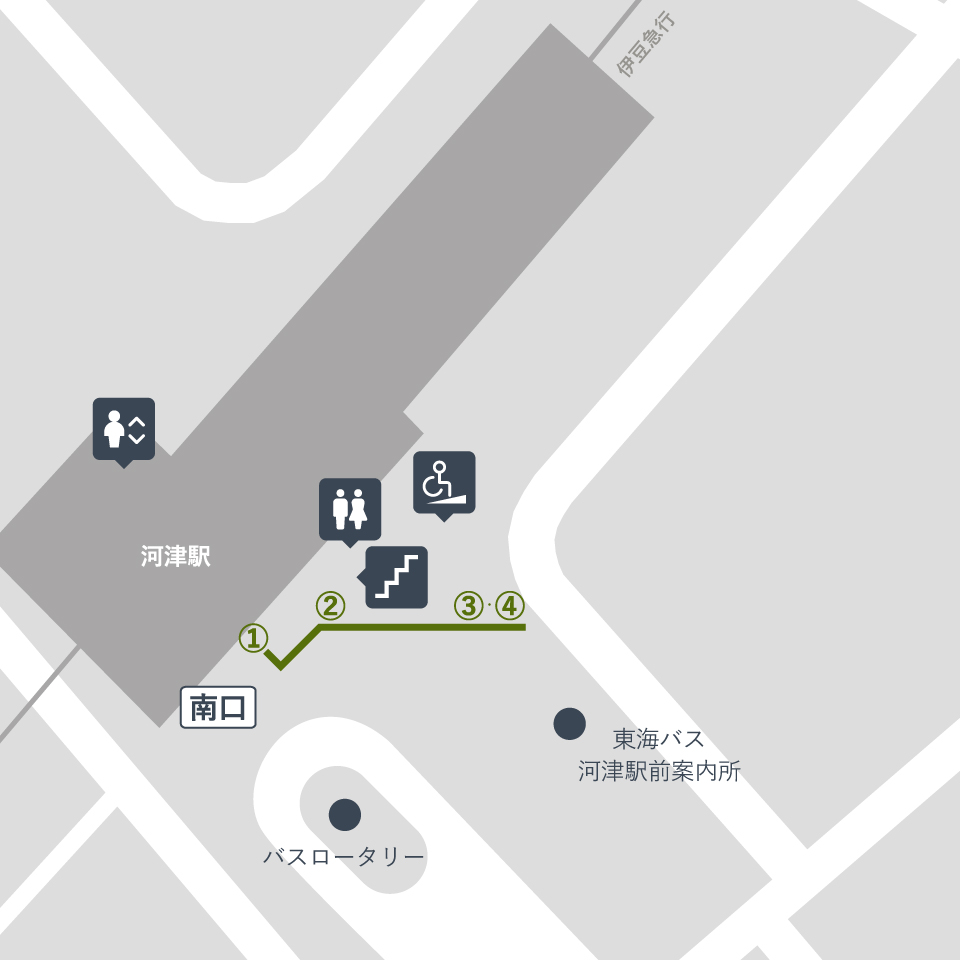 伊豆急行「河津駅」改札正面の南口からご出場ください。