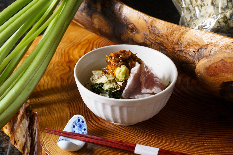 河津産の天然塩、EXV風味の伊豆味噌ソース -