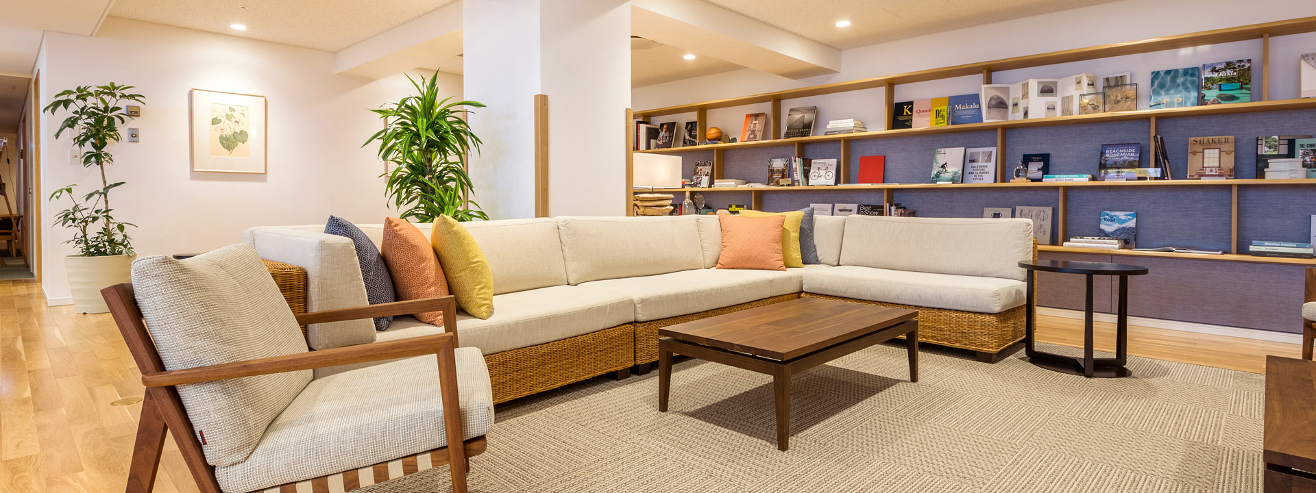 「水平線を臨むデッキ」をコンセプトに、芸術・建築・自然・インテリアなどの写真集、洋書を中心とした蔵書のフリースペースです。