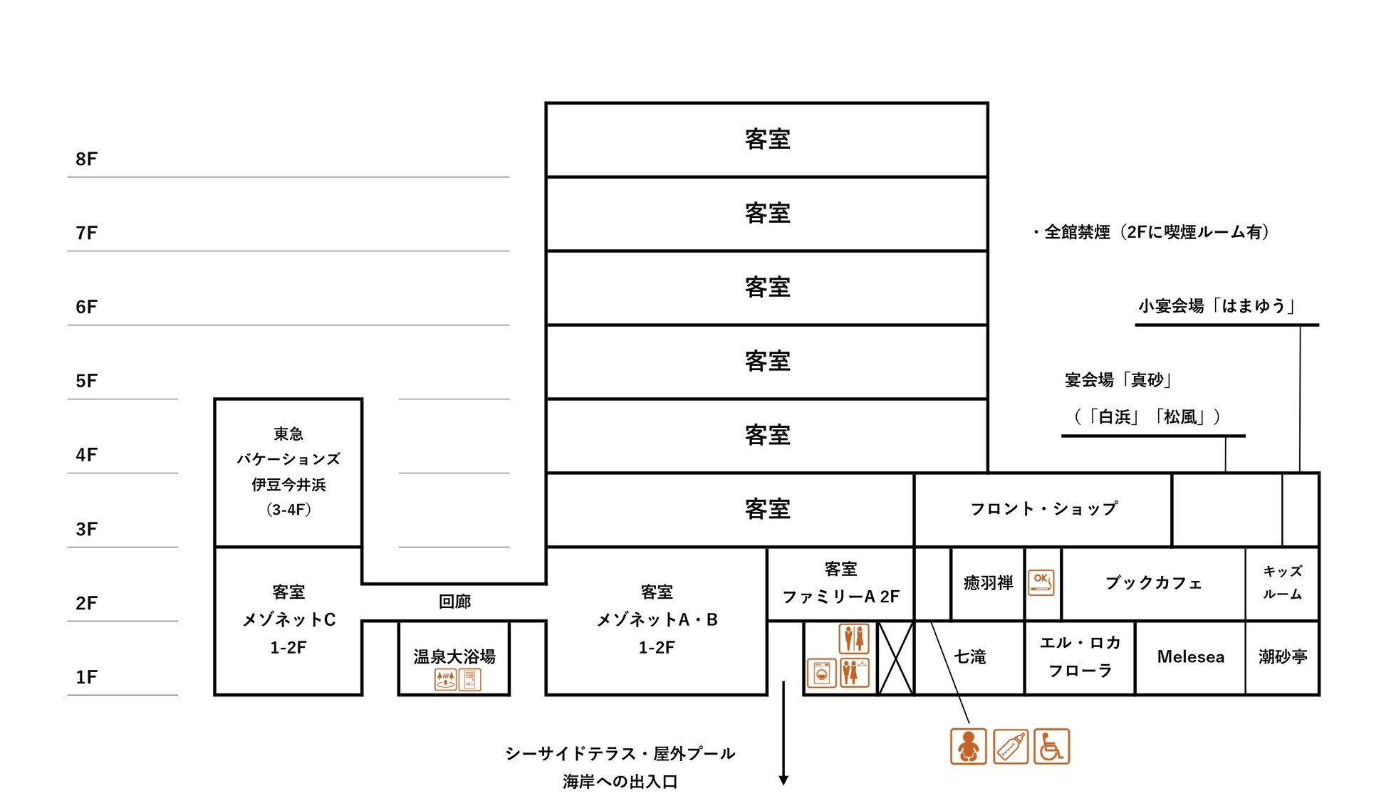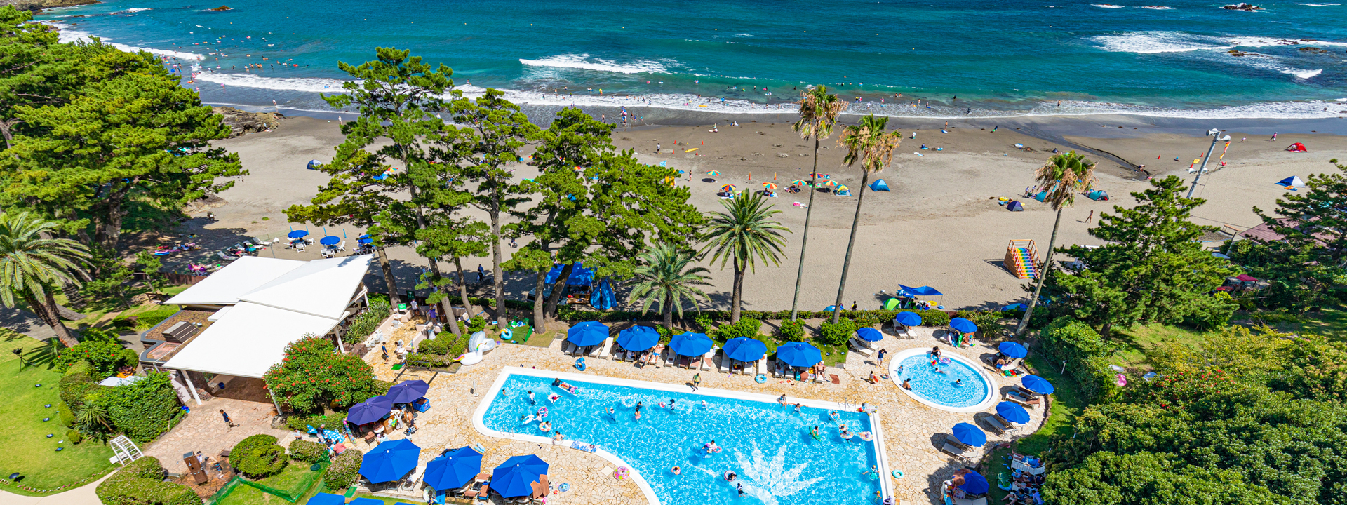 お子様用プールや屋外シャワー、トイレも併設。更衣室とともにチェックイン前・アウト後もご利用いただけます。