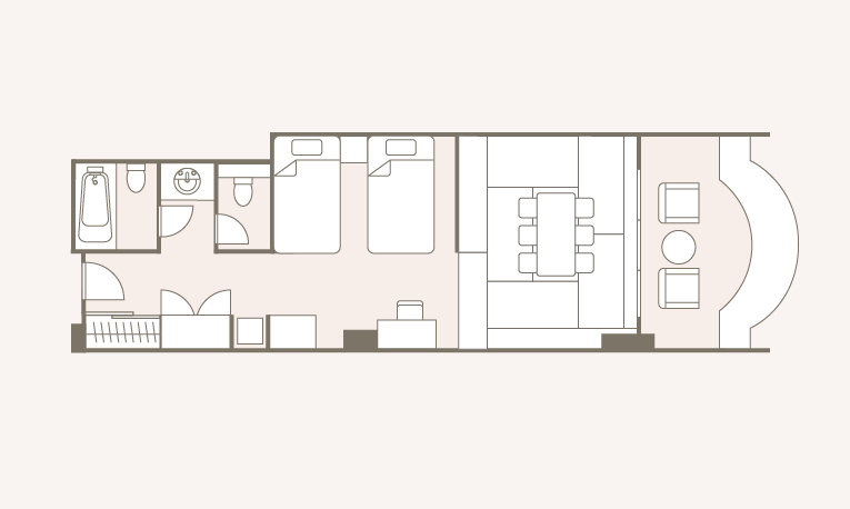 お部屋の間取りはあくまで一例です。面積や家具の配置、備品などはお部屋により異なりますので、あらかじめご了承ください。