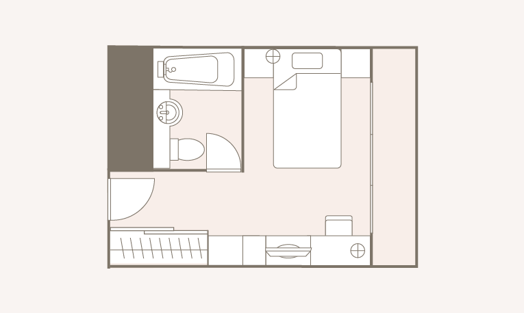 お部屋の間取りはあくまで一例です。面積や家具の配置、備品などはお部屋により異なりますので、あらかじめご了承ください。