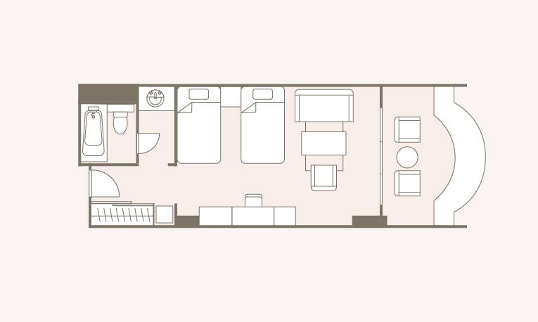 お部屋の間取りはあくまで一例です。面積や家具の配置、備品などはお部屋により異なりますので、あらかじめご了承ください。