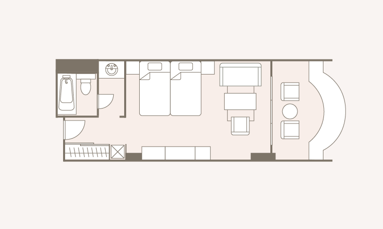 お部屋の間取りはあくまで一例です。面積や家具の配置、備品などはお部屋により異なりますので、あらかじめご了承ください。