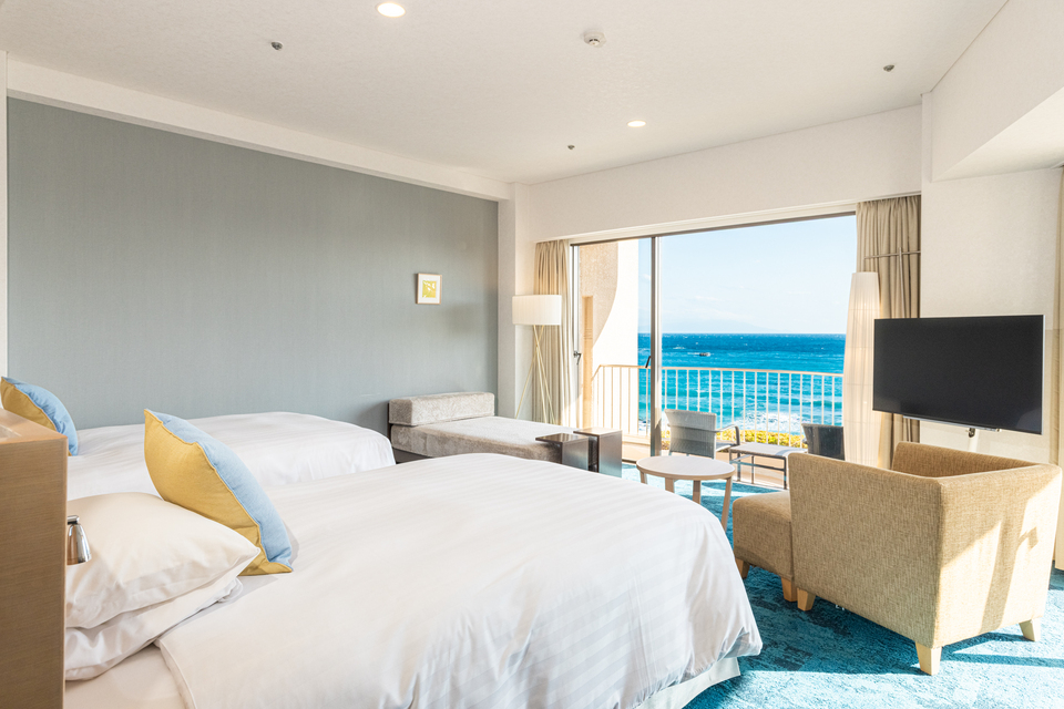 海に向かったベッドからはいつも海を眺めることができ、シーサイドリゾートを堪能できます。