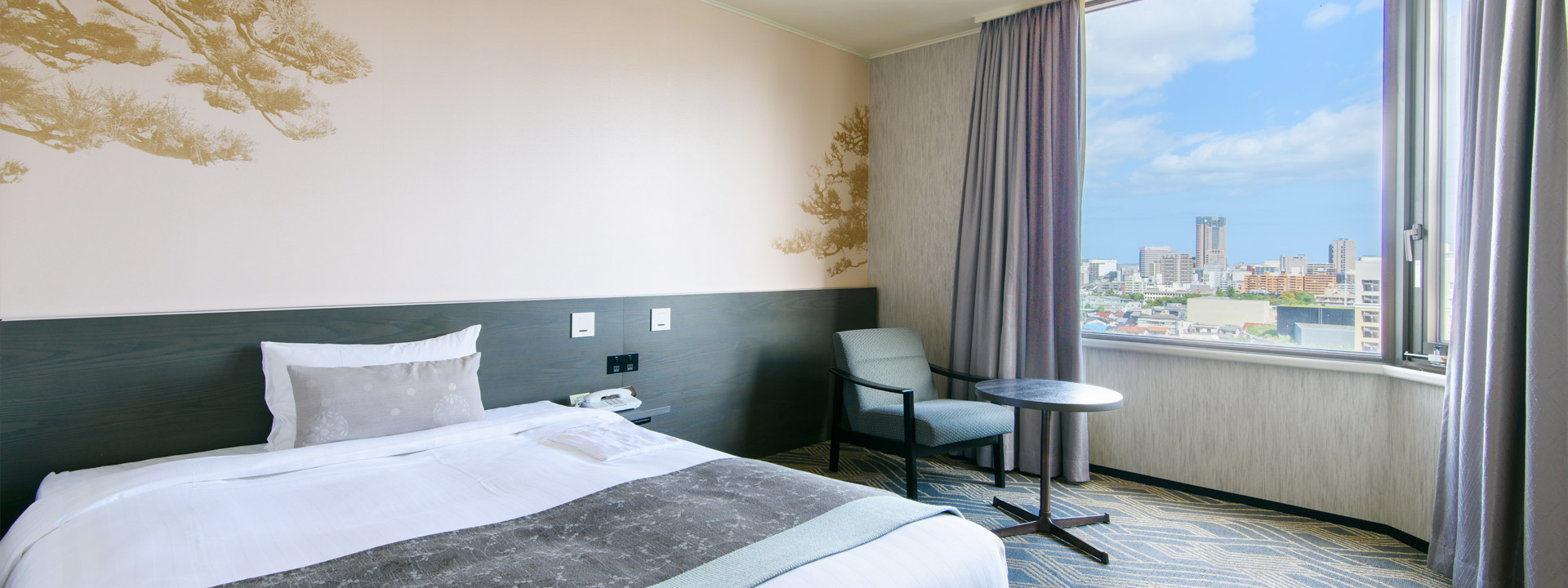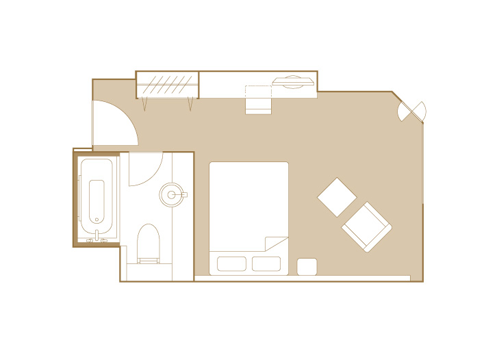 お部屋の間取りはあくまで一例です。面積や家具の配置、備品などはお部屋により異なりますので、あらかじめご了承ください。