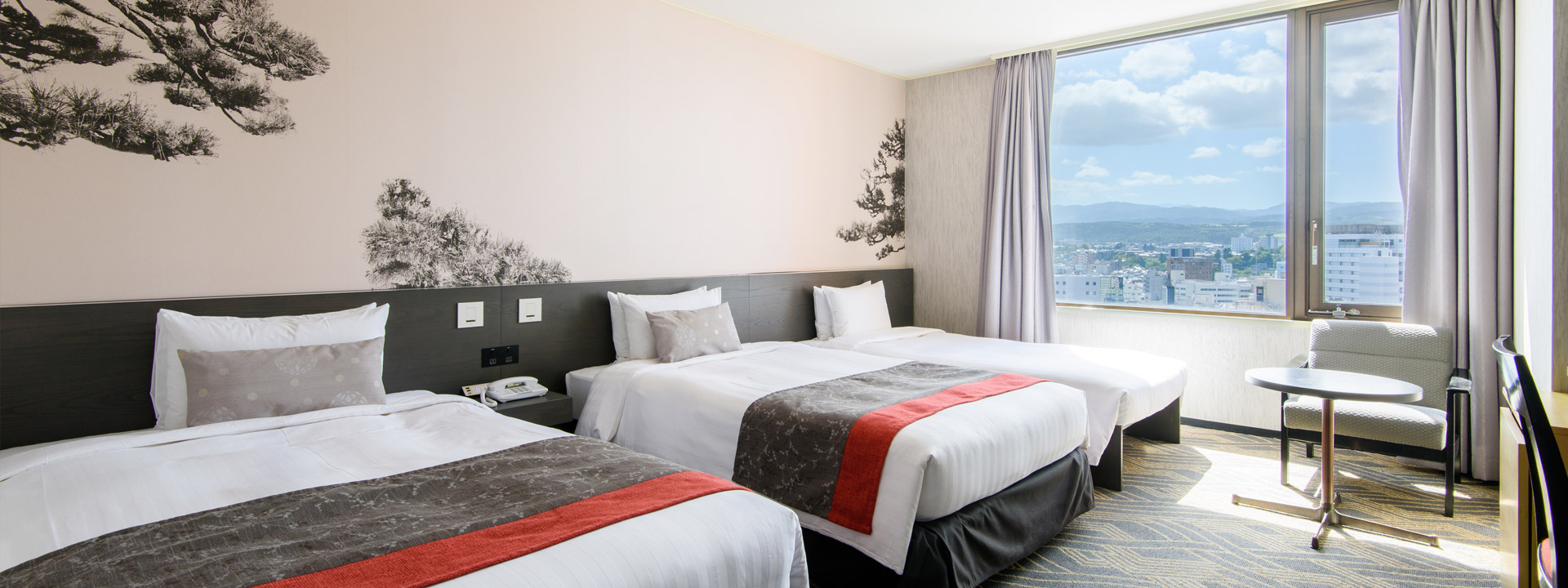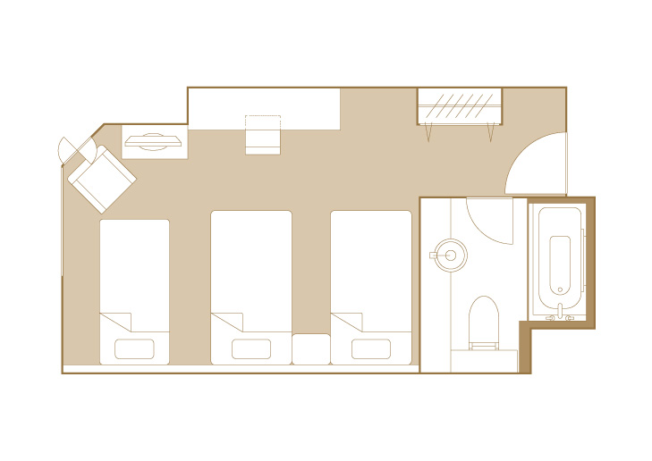 お部屋の間取りはあくまで一例です。面積や家具の配置、備品などはお部屋により異なりますので、あらかじめご了承ください。