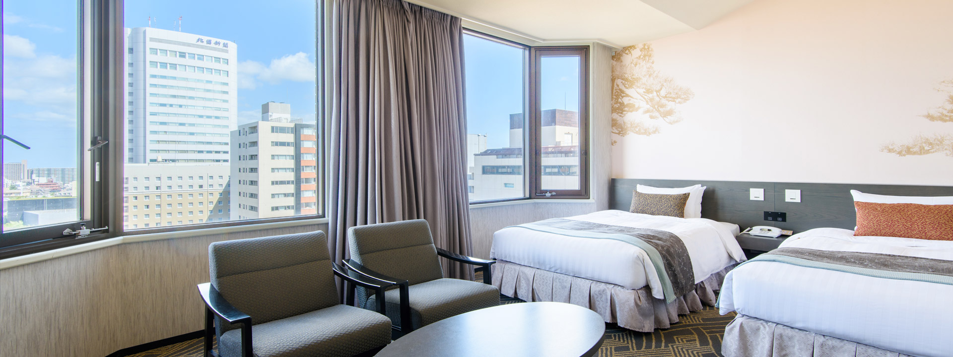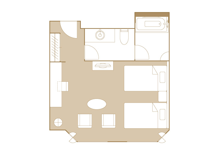 お部屋の間取りはあくまで一例です。面積や家具の配置、備品などはお部屋により異なりますので、あらかじめご了承ください。