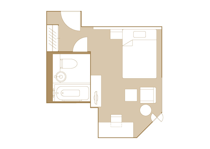 お部屋の間取りはあくまで一例です。面積や家具の配置、備品などはお部屋により異なりますので、あらかじめご了承ください。
